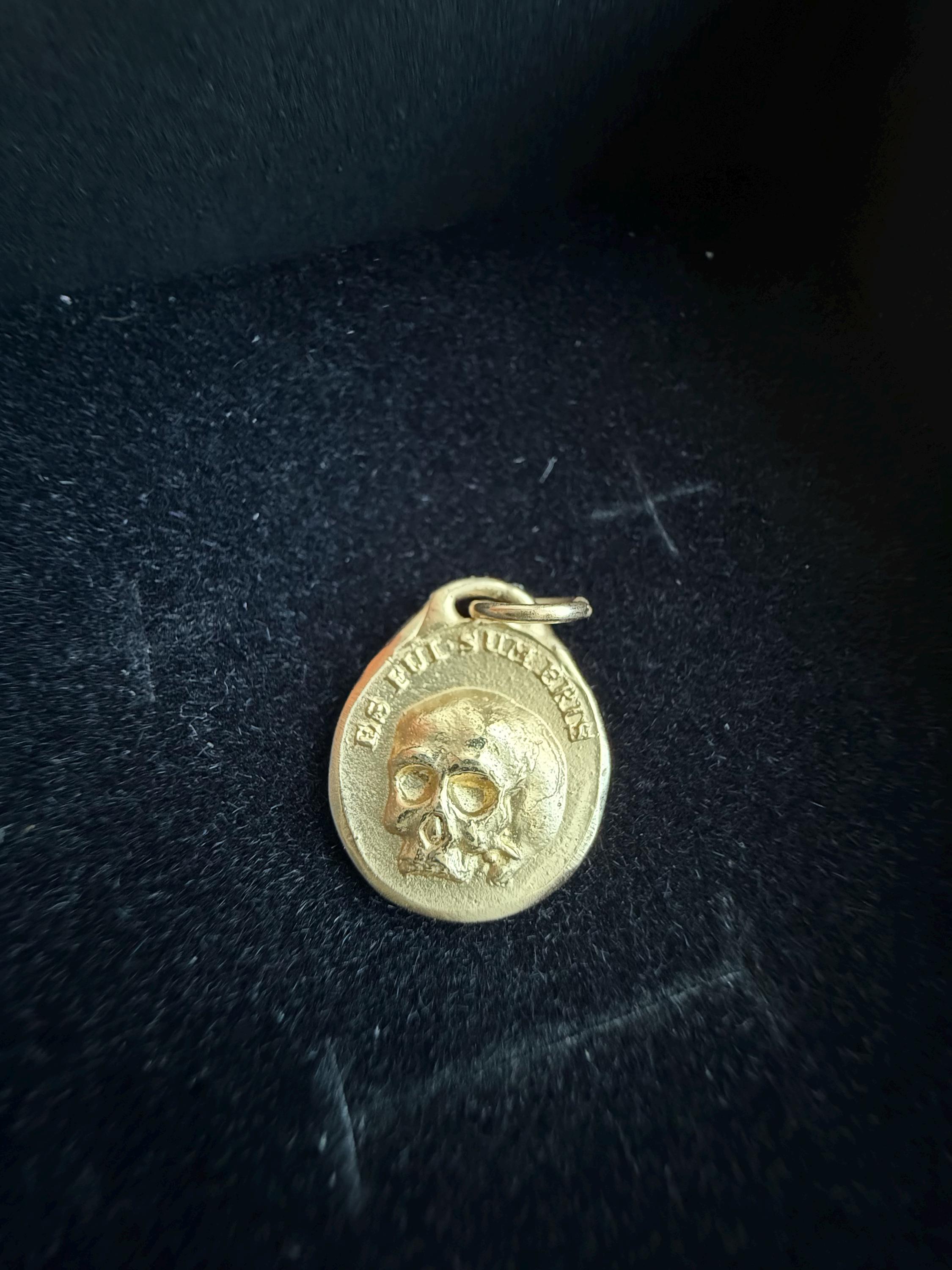 Solid 14k Gold Skull "Disc" Pendant (the chain is 14/20 heavy gold filled/plated but we can source solid gold chains)